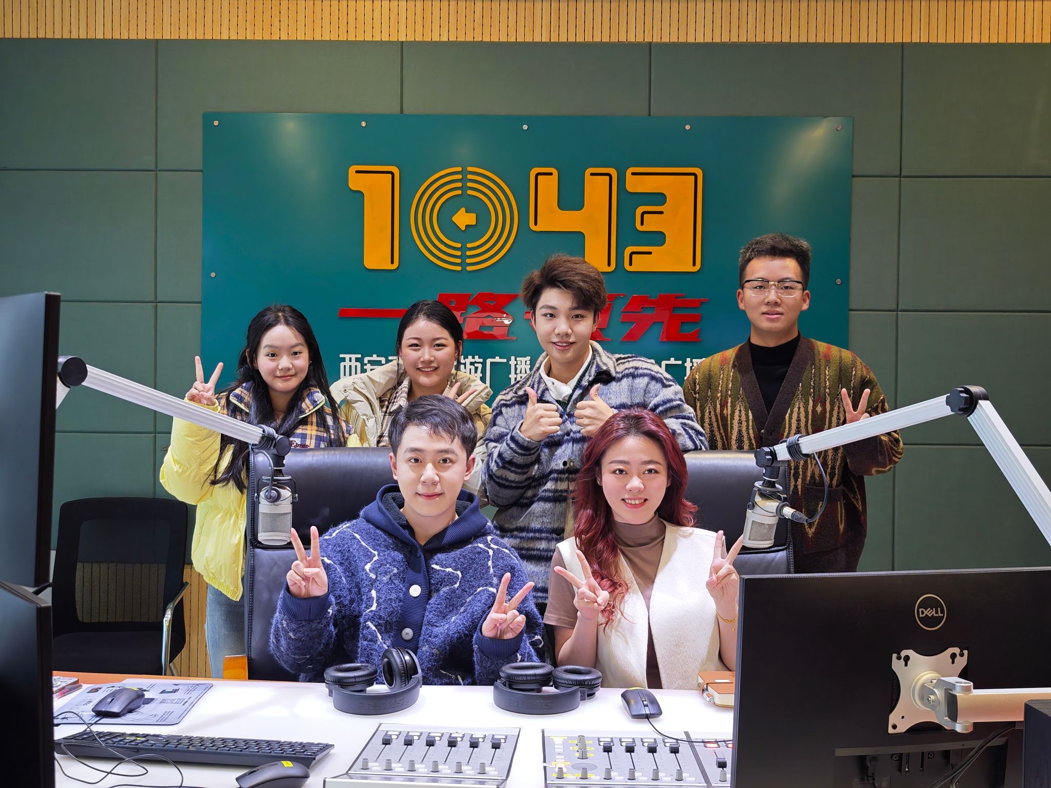 “您现在收听到的是西安上空最青春的声音——大学生来了”。伴随着轻快的音乐旋律和响亮的节目口号,西译与西安交通旅游广播FM104.3合作节目《大学生来了》(第十三期)于10月24日14时顺利开播,我院播主专业的魏伟康、苏学畅、杨濮赫、高昊翔和屈芯亦5名同学参加了此次直播。