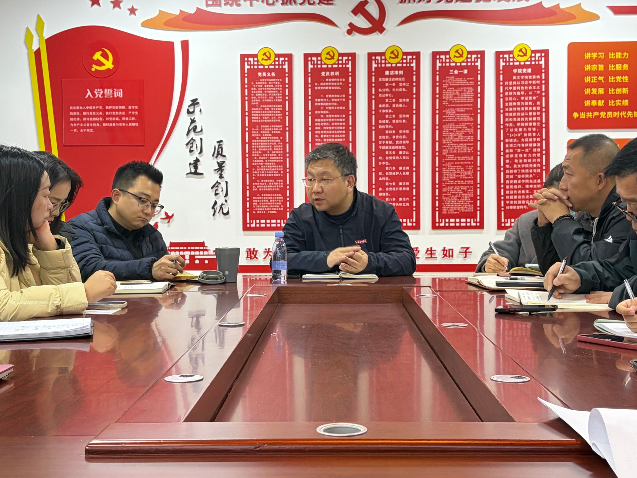 会上,学院党委书记、行政副院长樊磊进一步强调了兼职辅导员在学生思想政治引领中的关键作用。樊磊指出,辅导员队伍是开展大学生思想政治教育的骨干力量,兼职辅导员同样肩负着“立德树人”的根本任务。他要求全体兼职辅导员要提高政治站位,坚守育人初心,将思想价值引领贯穿于教育教学和管理服务全过程,引导学生坚定理想信念,厚植家国情怀,努力成长为担当民族复兴大任的时代新人。同时,他希望专兼职辅导员之间要加强沟通协作,相互学习,形成优势互补,共同服务学生成长成才。