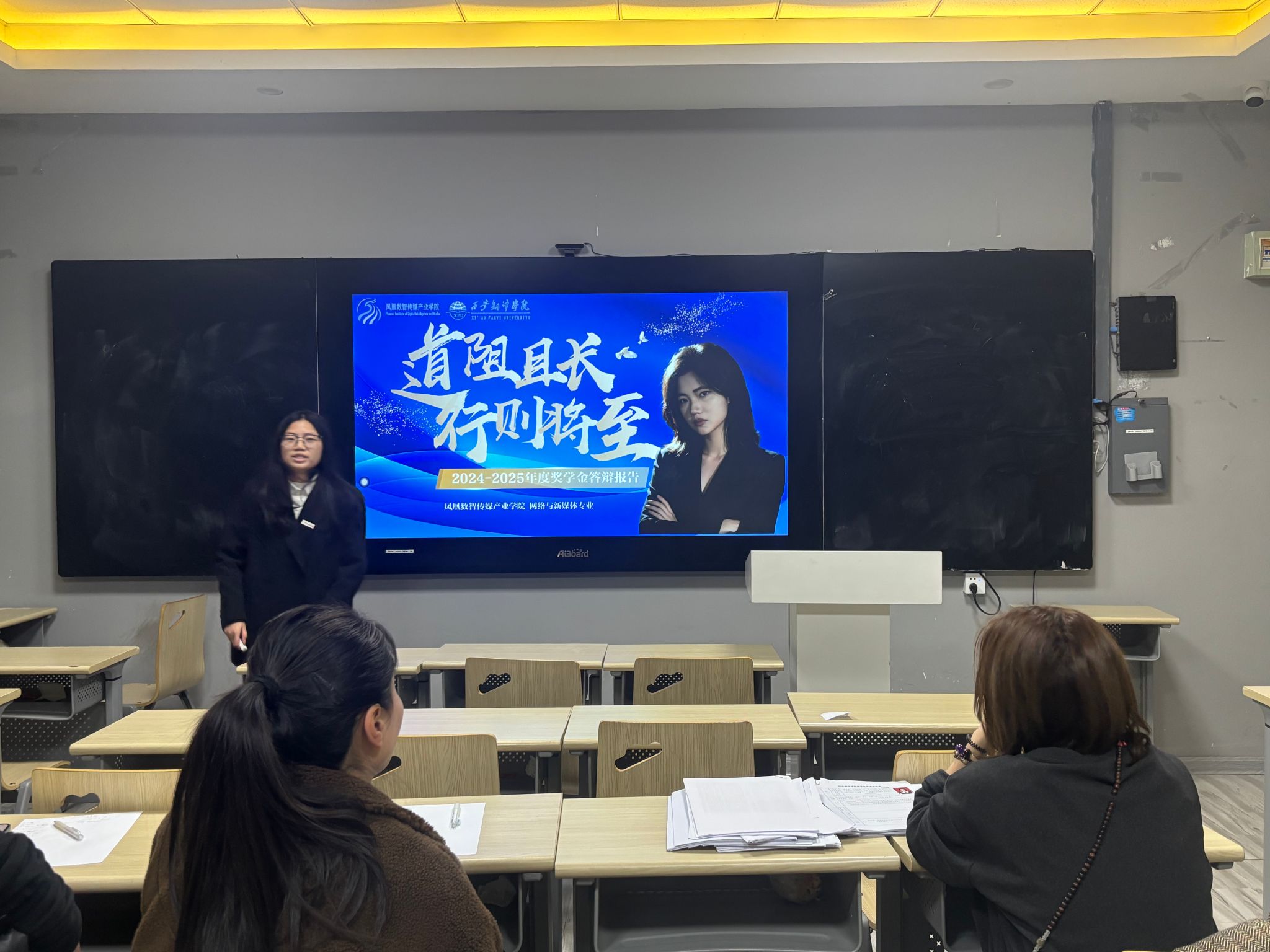 为深化榜样育人成效,厚植“读书、做人、变革、奋进”校训精神,树立品学兼优、聚力奋进的先进标杆,营造勤学善思、争先创优的优良学风班风。11月21日,凤凰数智传媒产业学院于西区一号楼1106教室以线上线下同步联动形式,开展丁祖诒奖学金、校级一等奖学金、优良学风班及先进班集体答辩活动。本次答辩活动特邀学院综合办副主任尹娜及辅导员张溪、孙叶扬、杨刚、张扬萍、苗萌,董小健担任评委。
