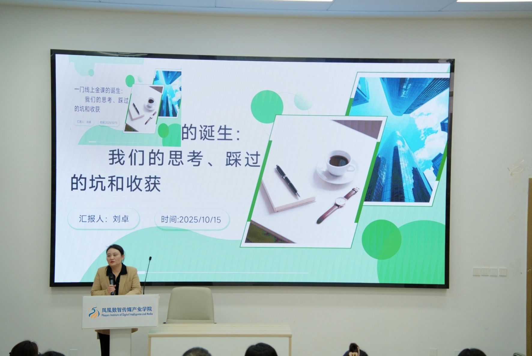 为助力教师深化课程建设认知,提升一流课程塑造能力,10月15日下午,凤凰数智传媒产业学院在5117T教室举办了一场以《一门线上金课的诞生:我们的思考、踩过的坑和收获》为主题的讲座,由文学与传媒学院副教授刘卓主讲,学院各专业教师积极参与。