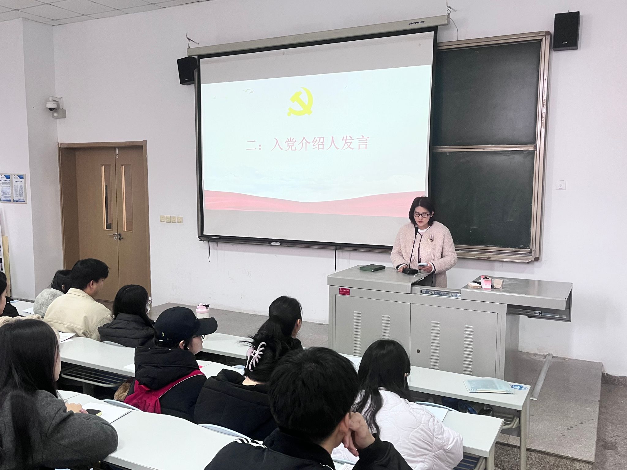 随后,入党介绍人孙叶扬、张溪、勾星三位辅导员依次发言。她们结合日常工作中对发展对象的观察与了解,从思想觉悟、学习态度、工作表现、生活作风等多个维度,全面客观地介绍了发展对象的具体情况,对其积极向上的精神状态和突出的综合表现给予充分肯定,同时也提出了针对性的改进建议,并一致同意推荐发展对象成为预备党员。