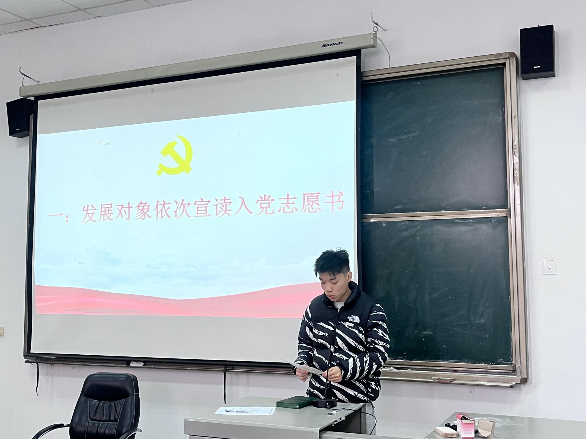 紧接着,支委会成员宣读政审决议。决议详细汇报了对各发展对象的政治审查情况,明确其政治历史清白、思想作风正派,符合预备党员接收的政治条件,为大会后续表决提供了重要依据。