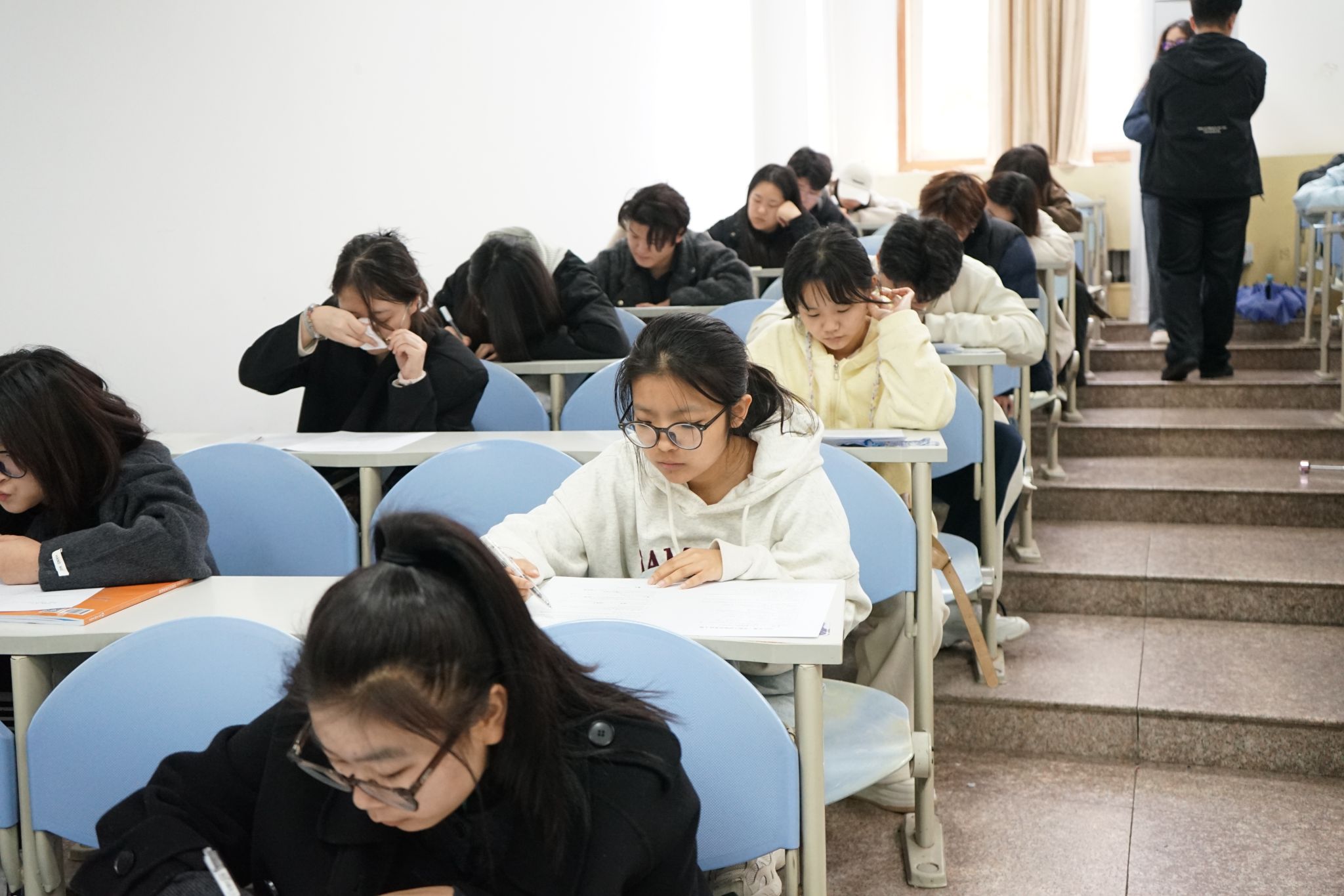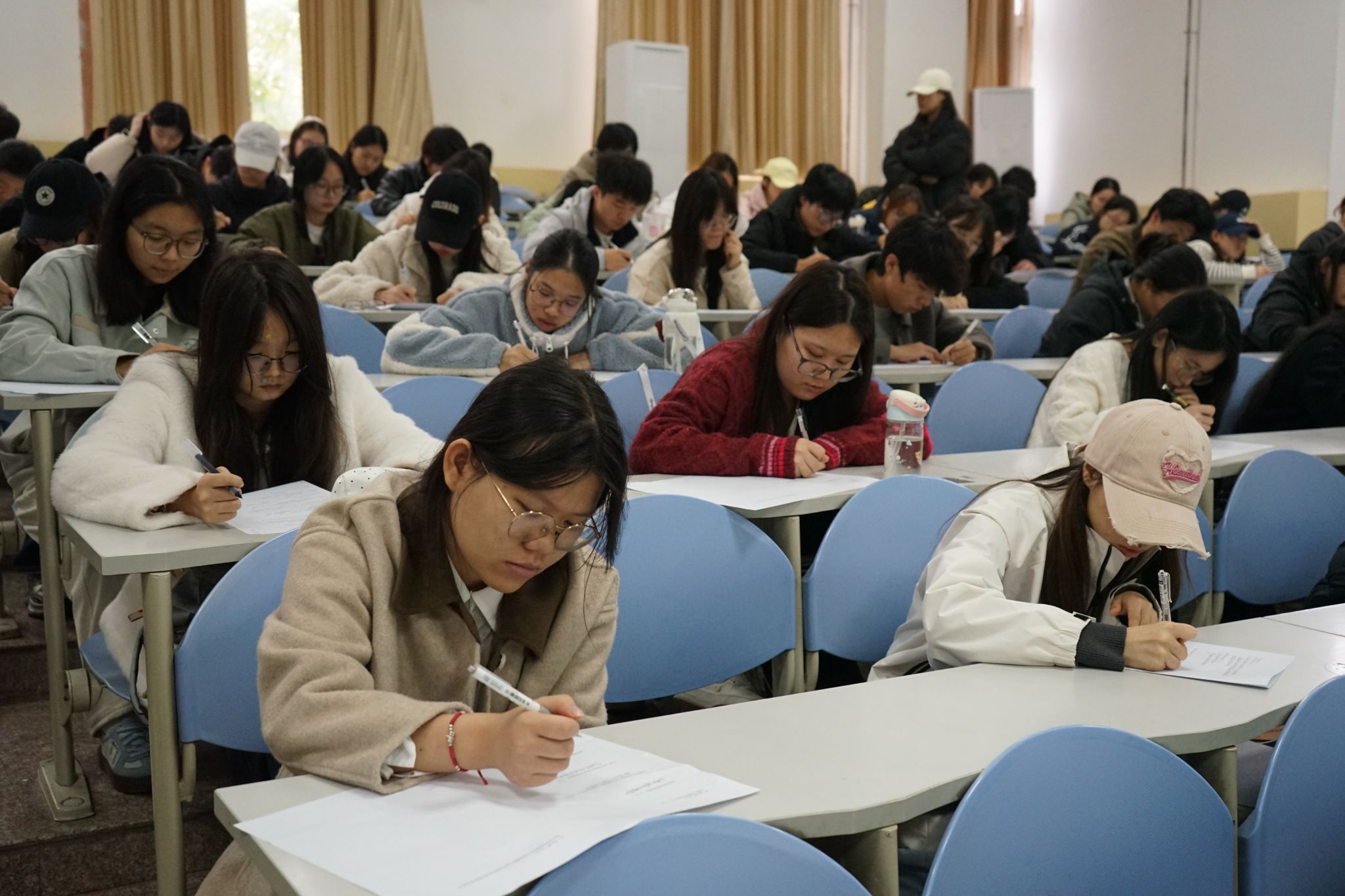 考试伊始,全体参考团员有序签到,以饱满的精神状态迎接本次检验。考试过程中,学院团总支书记田宇彤和团总支副书记杨刚两位领导亲临现场进行监考,既是对本次团课培训的重视,也为参考团员们增添了信心与动力。
