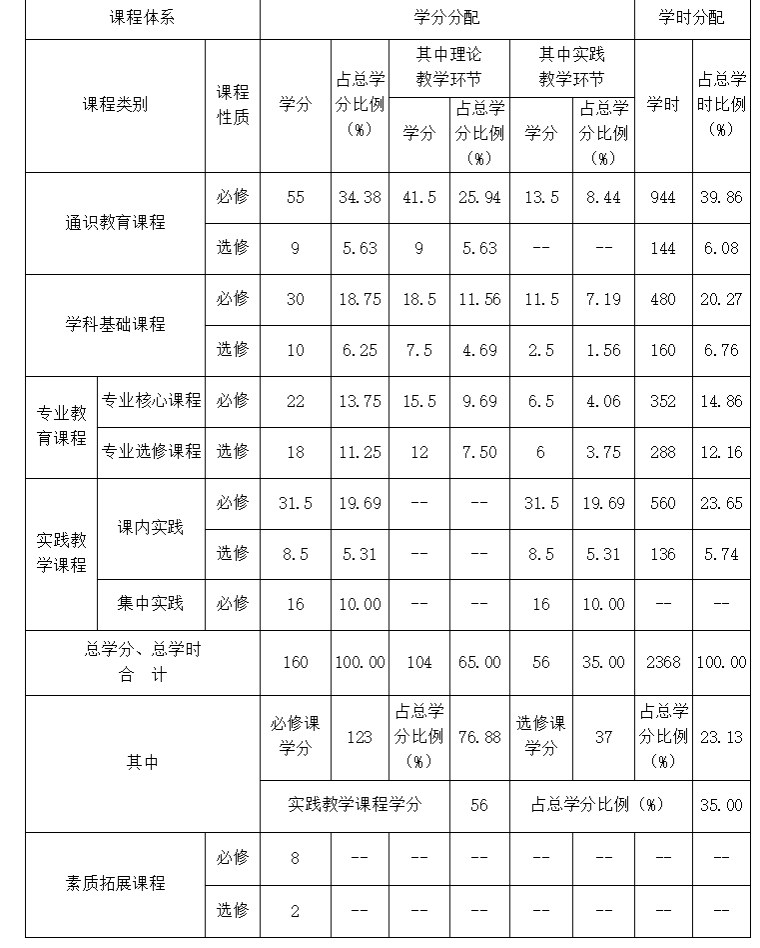 本专业要求学生毕业时,应完成总学分160学分,课外素质拓展10学分(不计入总学分),获得至少一项与本专业相关的职业资格证书或技能等级证书。